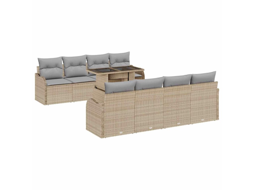 Sada zahradních pohovek s polštářem 9 pcs Béžová Poly ratan