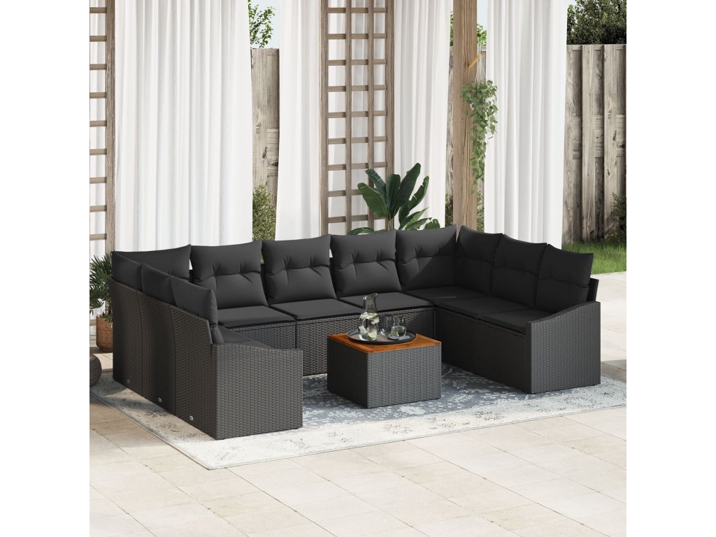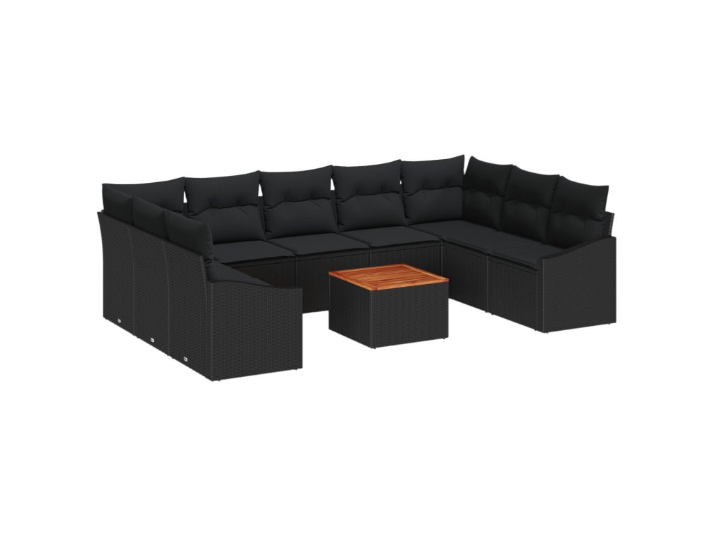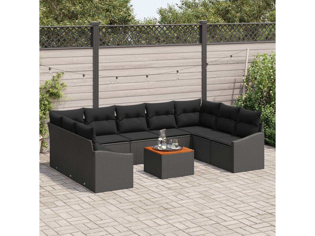 Sada zahradních pohovek s polštářem 10 pcs Černá Poly ratan