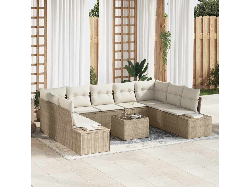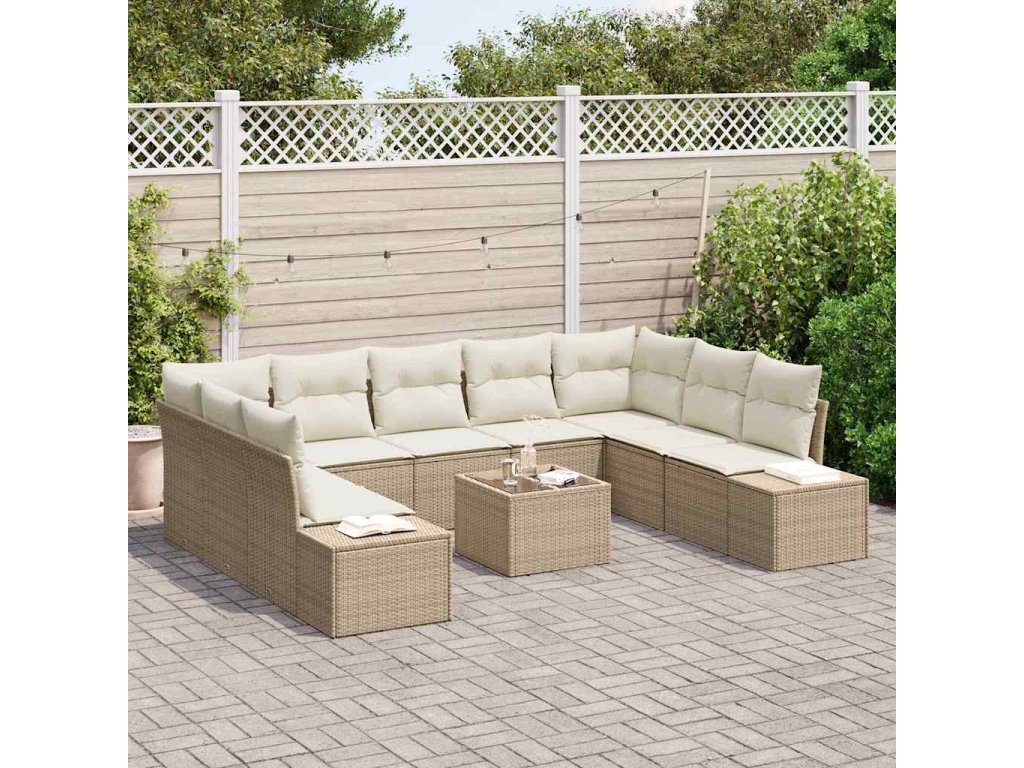 Sada zahradních pohovek 10 pcs Béžová a krémová Poly Ratan