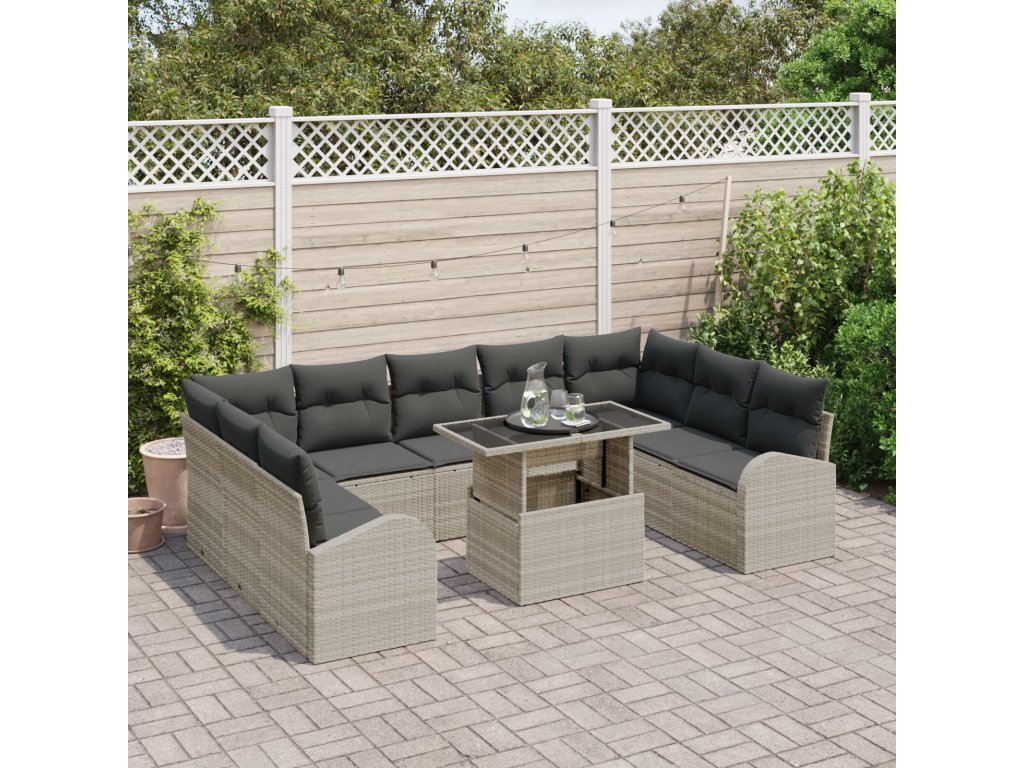 Set pohovek s polštářem 10 pcs Světlá šedá a šedá polyratan