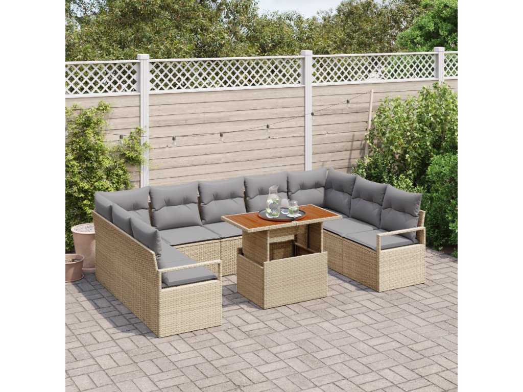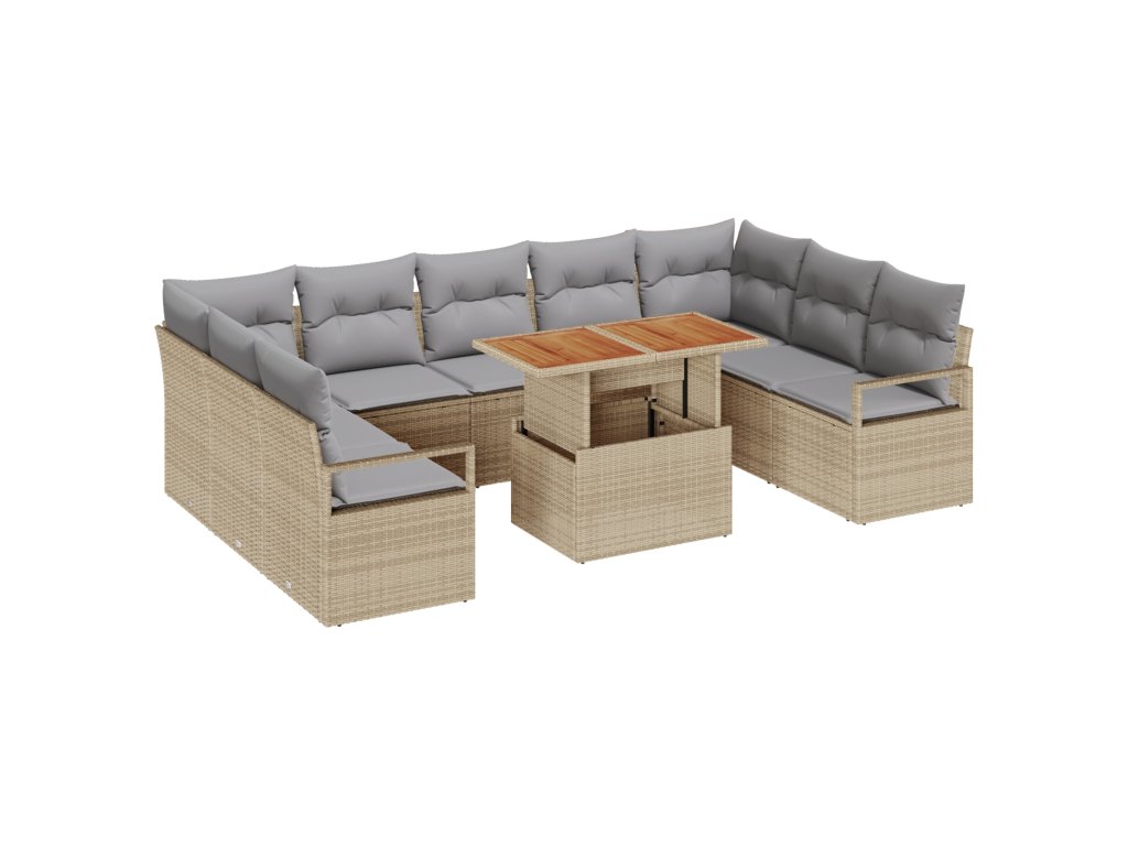 Sada zahradních pohovek s polštářem 10 pcs Beige a šedá