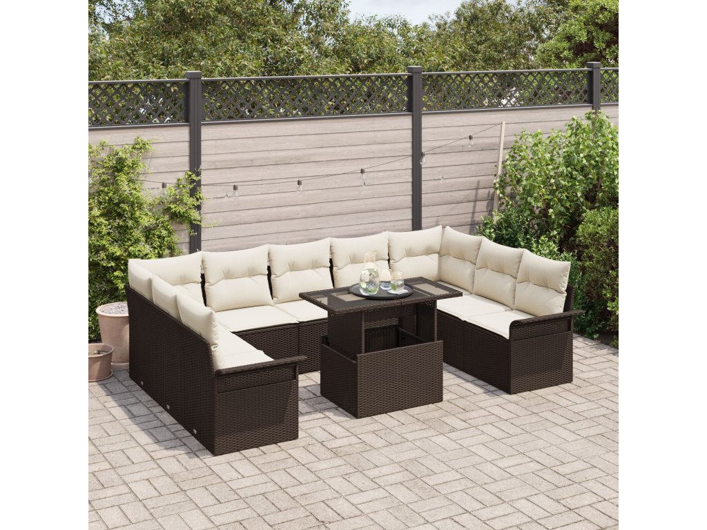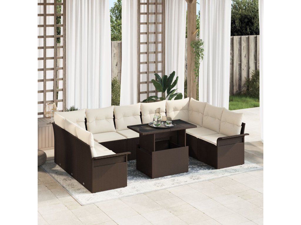 Sada zahradních pohovek s polštářem 10 pcs Hnědá Poly ratan