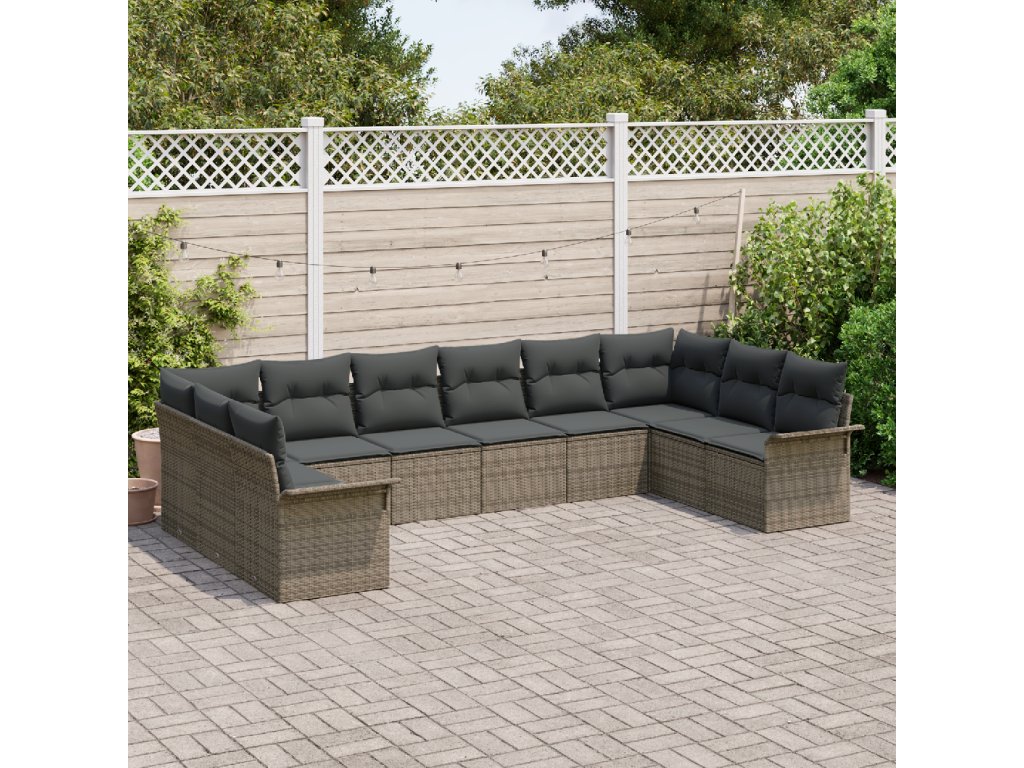 Sada zahradních pohovek s úložištěm 10 pcs Šedá polyratan