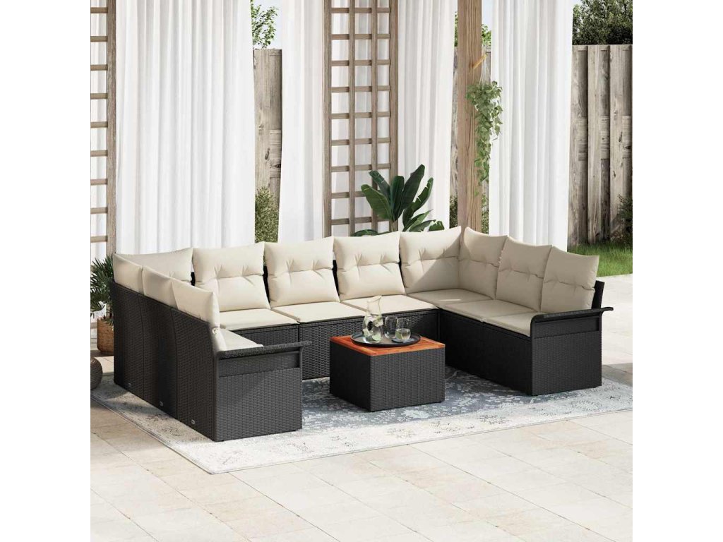 Sada zahradních pohovek s polštářem 10 pcs Černá a krémová