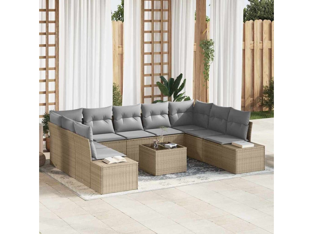 Sada zahradních pohovek 10 pcs Béžová a Světle šedá Poly Ratan