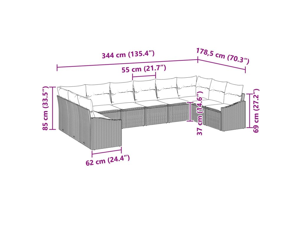 Set pohovek s polštářem 10 pcs Černá polyratan
