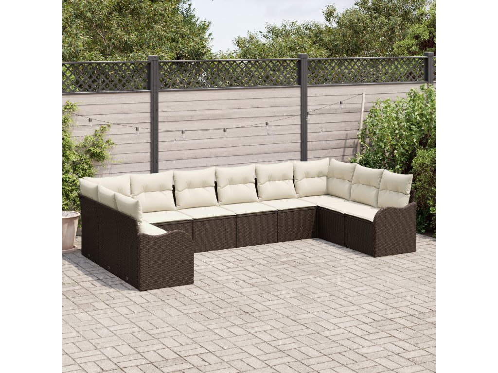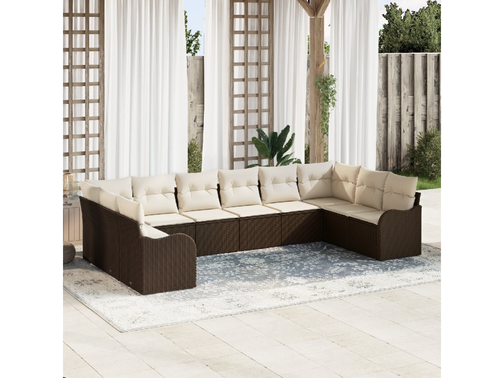 Sada zahradních pohovek 10 pcs Hnědá a bílá polyratan