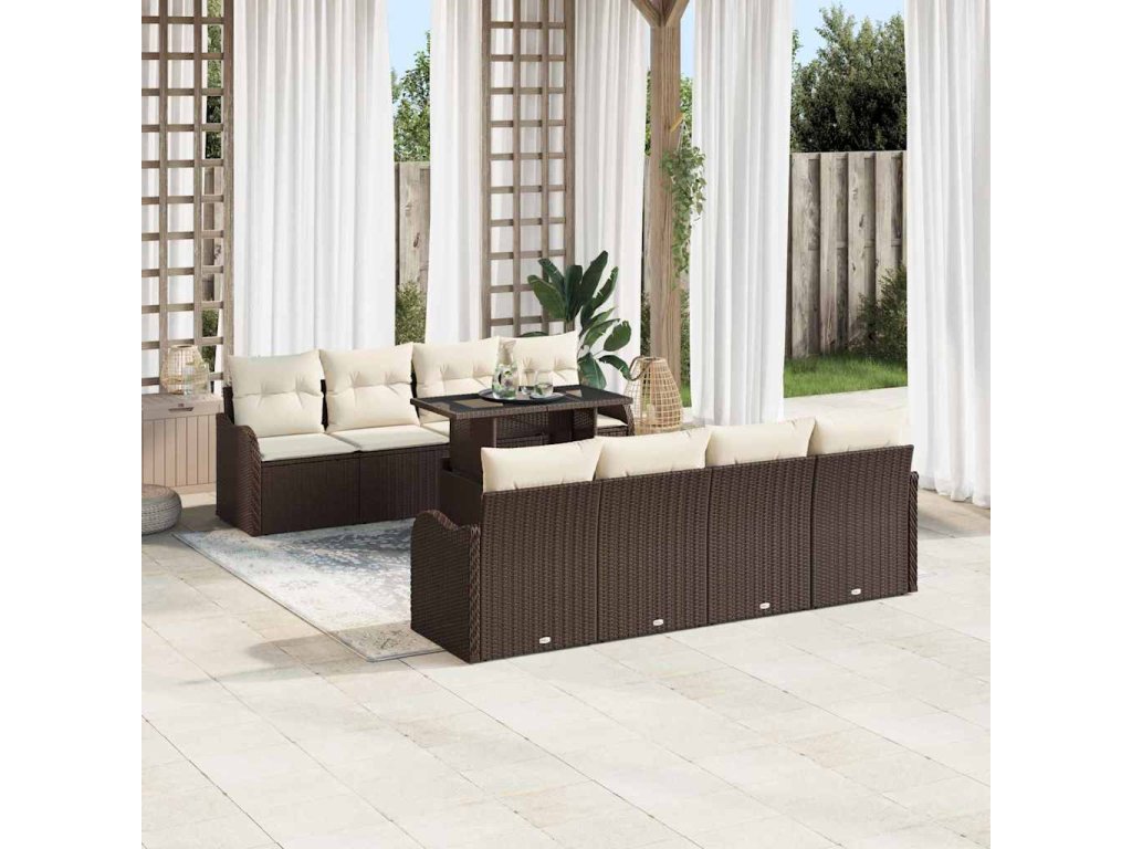 Sada zahradních pohovek s polštářem 9 pcs Hnědá Poly ratan