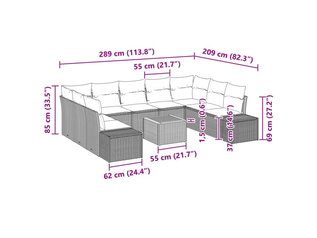 Sada zahradních pohovek s polštářem 10 pcs Šedá Poly ratan