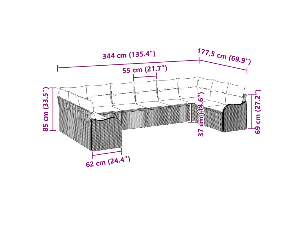 Sada zahradních pohovek 10 pcs Světle šedá polyratan