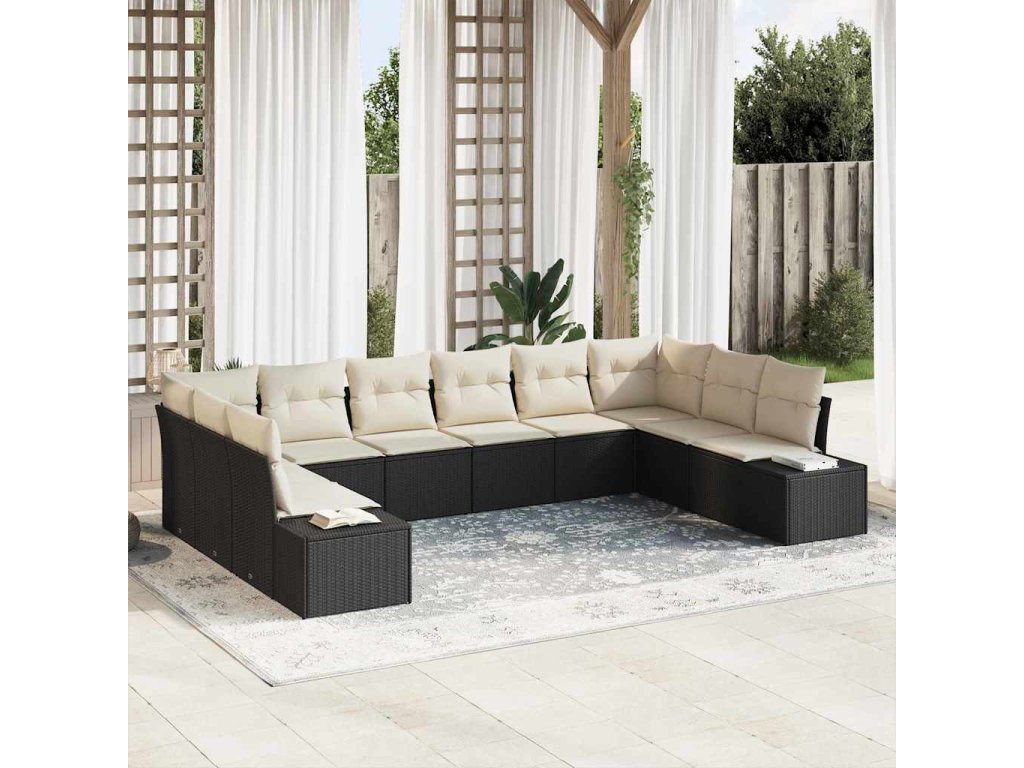 Sada zahradních pohovek 10 pcs Černá a krémová Poly Ratan