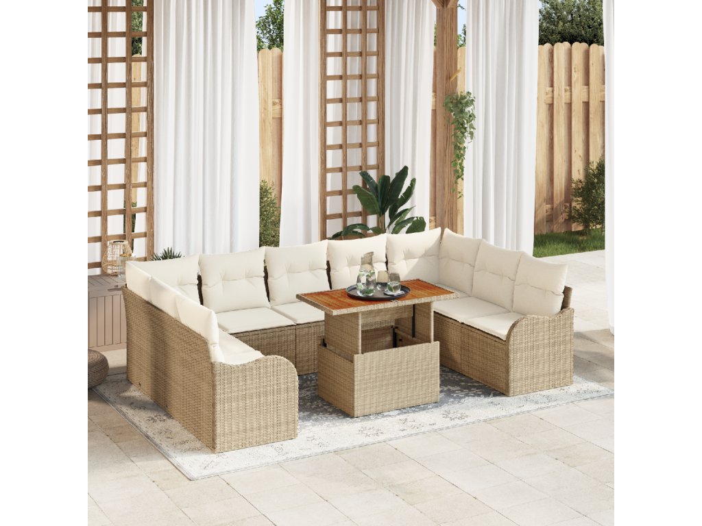 Sada zahradních pohovek s polštářem 10 pcs béžová a krémová