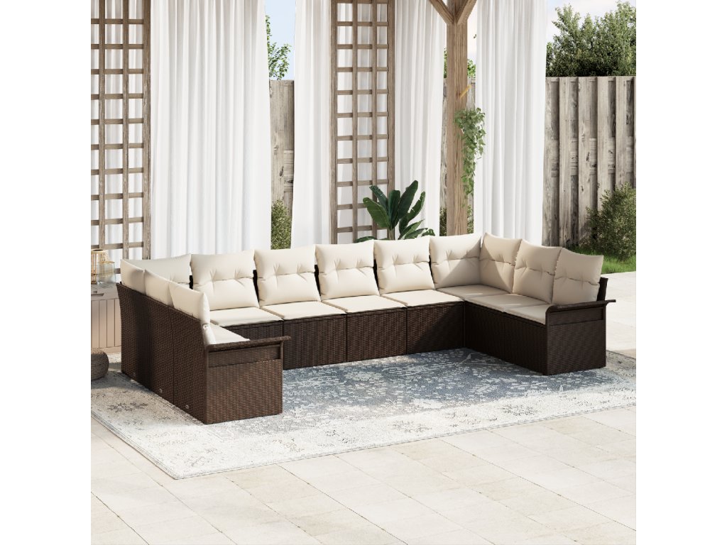 Sada zahradních pohovek s úložištěm 10 pcs Hnědá polyratan