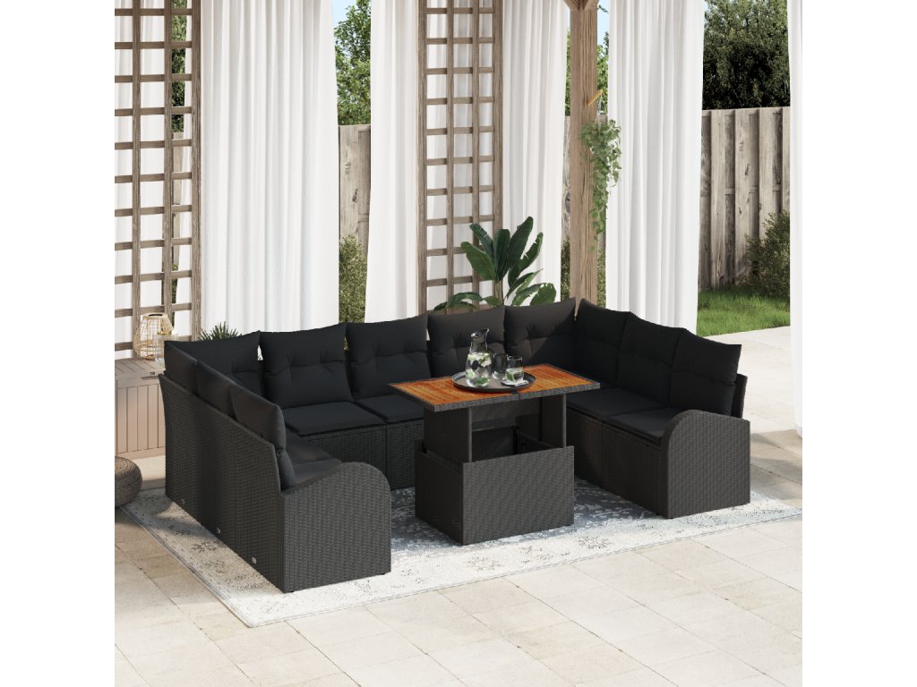 Sada zahradních pohovek s polštářem 10 pcs Černá
