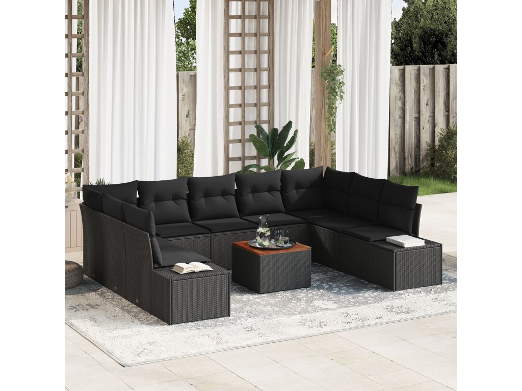Sada zahradních pohovek s polštářem 10 pcs Černá Poly ratan
