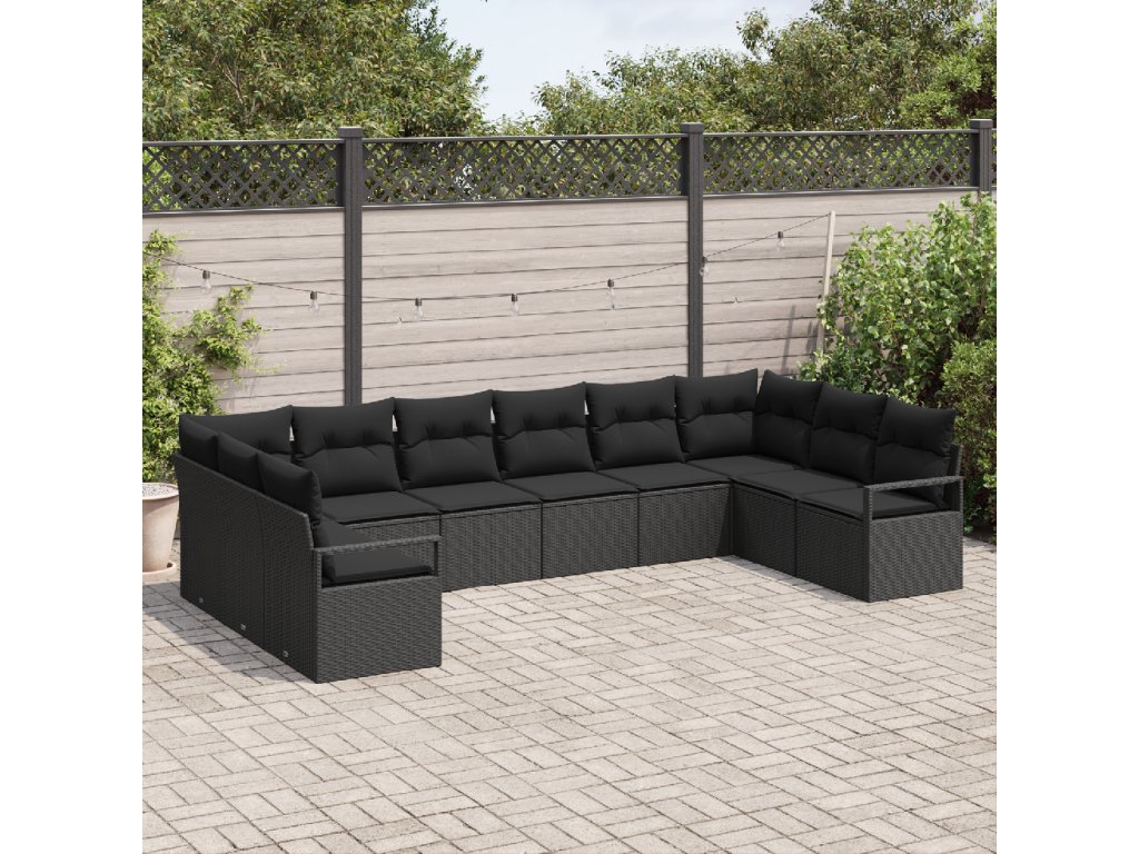 Set pohovek s polštářem s úložištěm 10 pcs Černá polyratan