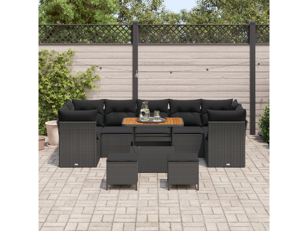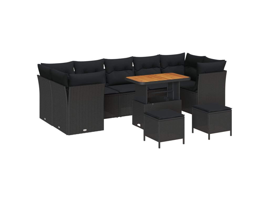 Sada zahradních pohovek s polštářem s úložištěm 10 pcs Černá