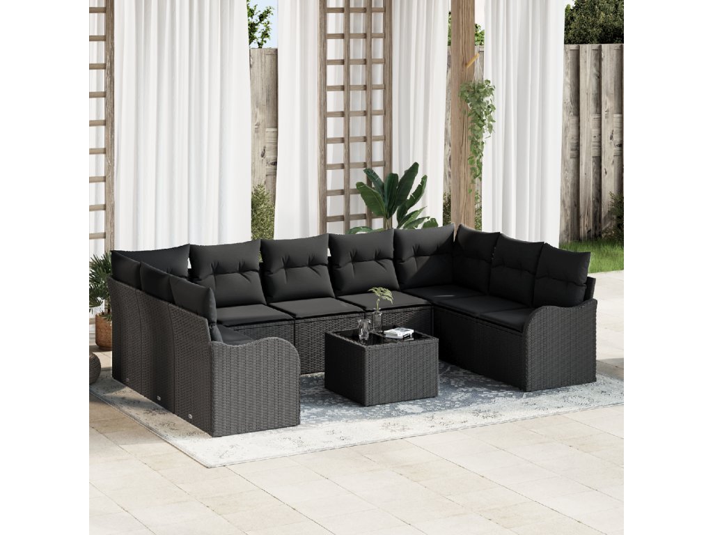 Sada zahradních pohovek s polštářem 10 pcs Černá Poly ratan