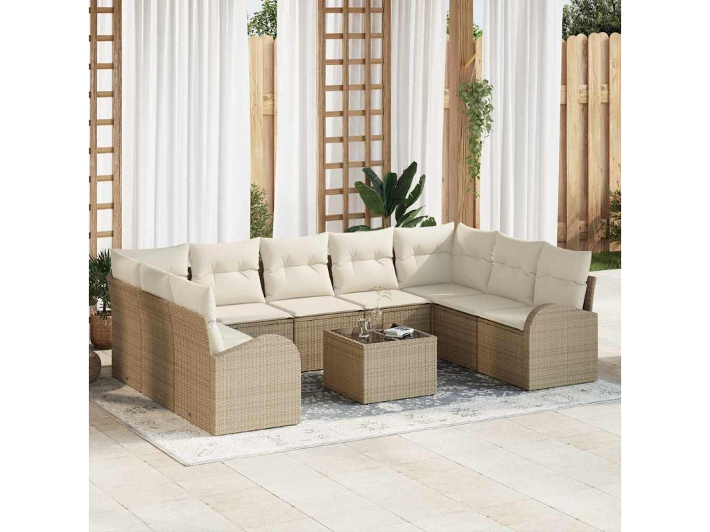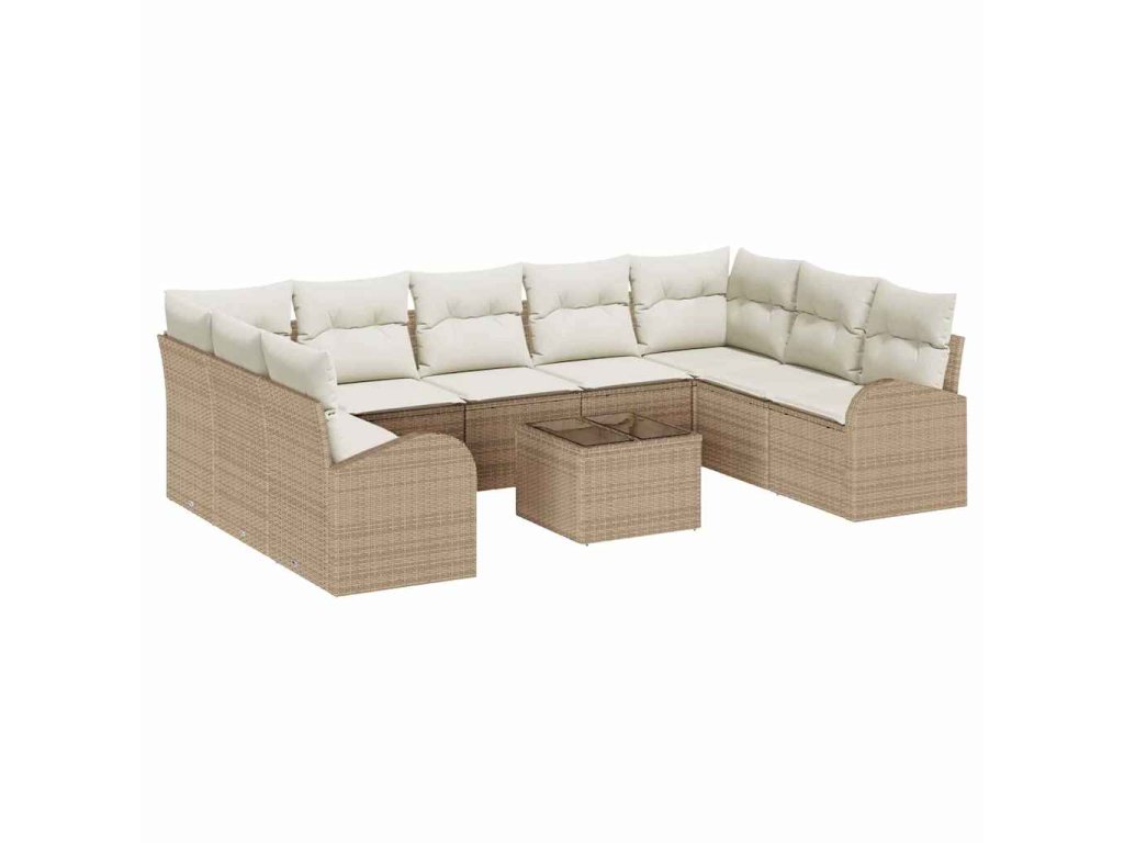 Set pohovek s polštářem 10 pcs Béžová a bílá polyratan