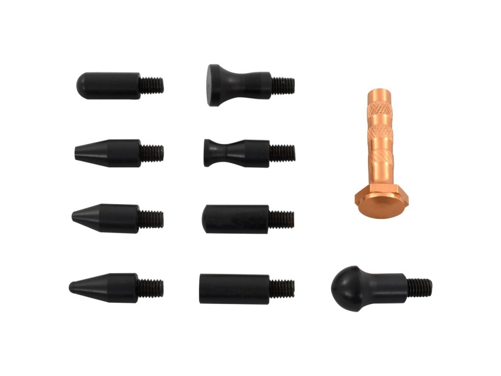 Obsahuje opravovací pero, které se dá používat v kombinaci se všemi 9 hlavicemi různých tvarů. Stačí vybrat správnou hlavici, a sklepete vystouplá místa na karosérii s velkou přesností. Tato sada autoklempířského nářadí se používá velmi snadno a stane se nepostradatelnou součástí vybavení vaší dílny.