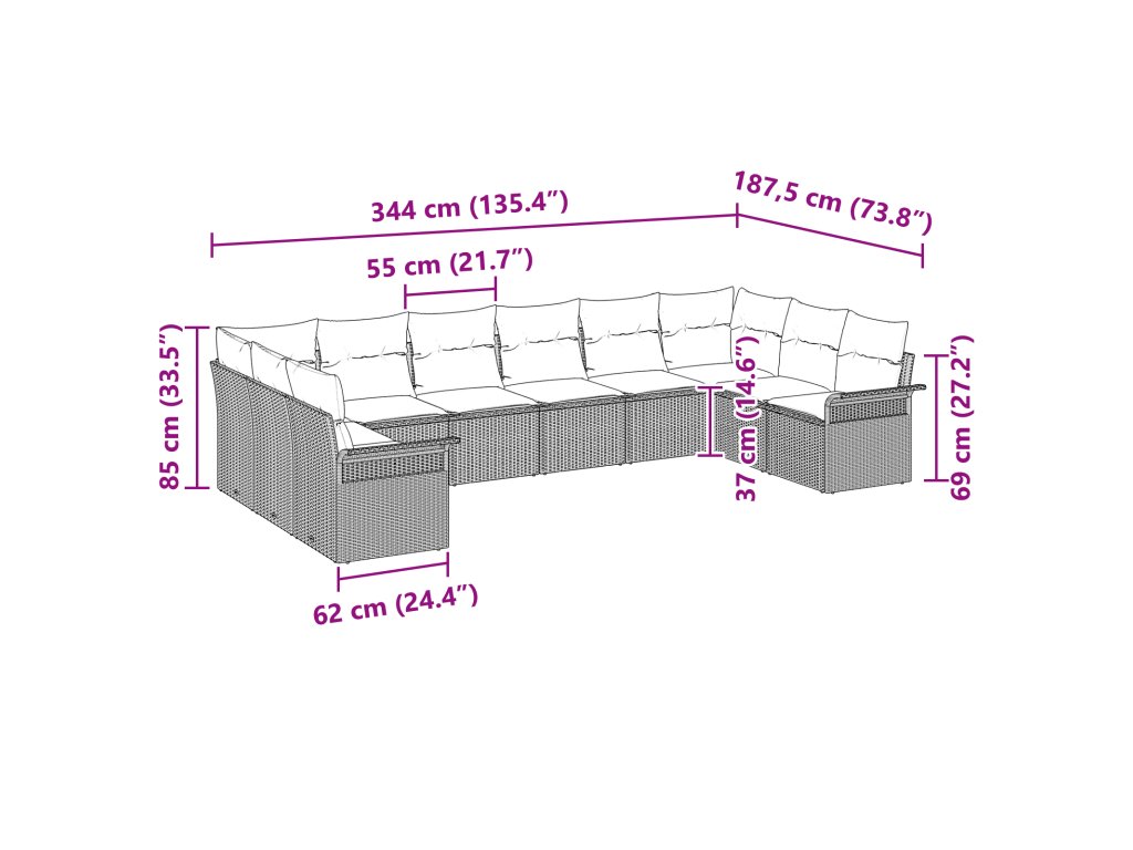 Sada zahradních pohovek 10 pcs Světle šedá polyratan