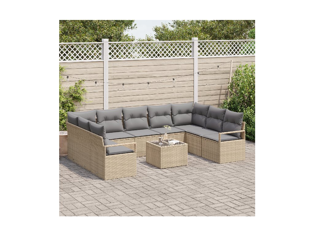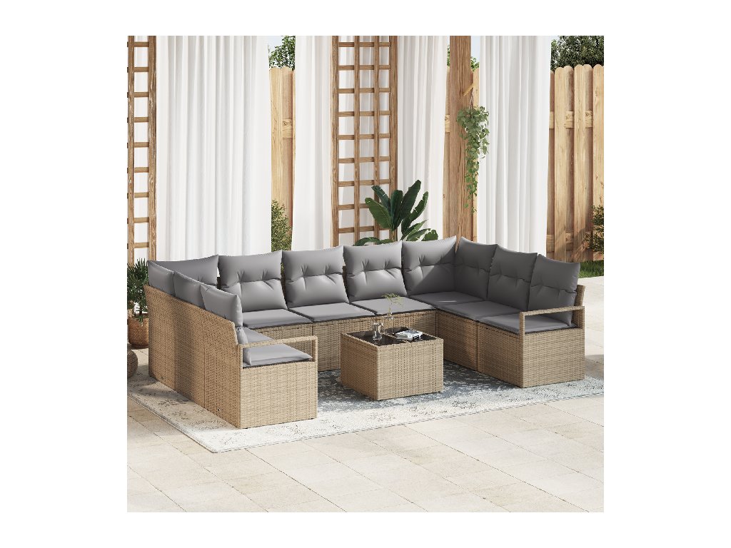 Set pohovek s polštářem 10 pcs Béžová a Světle šedá polyratan