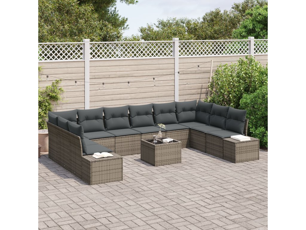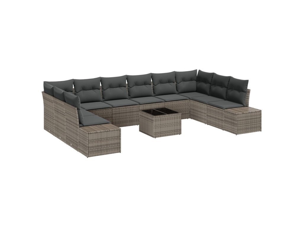 Sada zahradních pohovek s polštářem 11 pcs Šedá polyratan