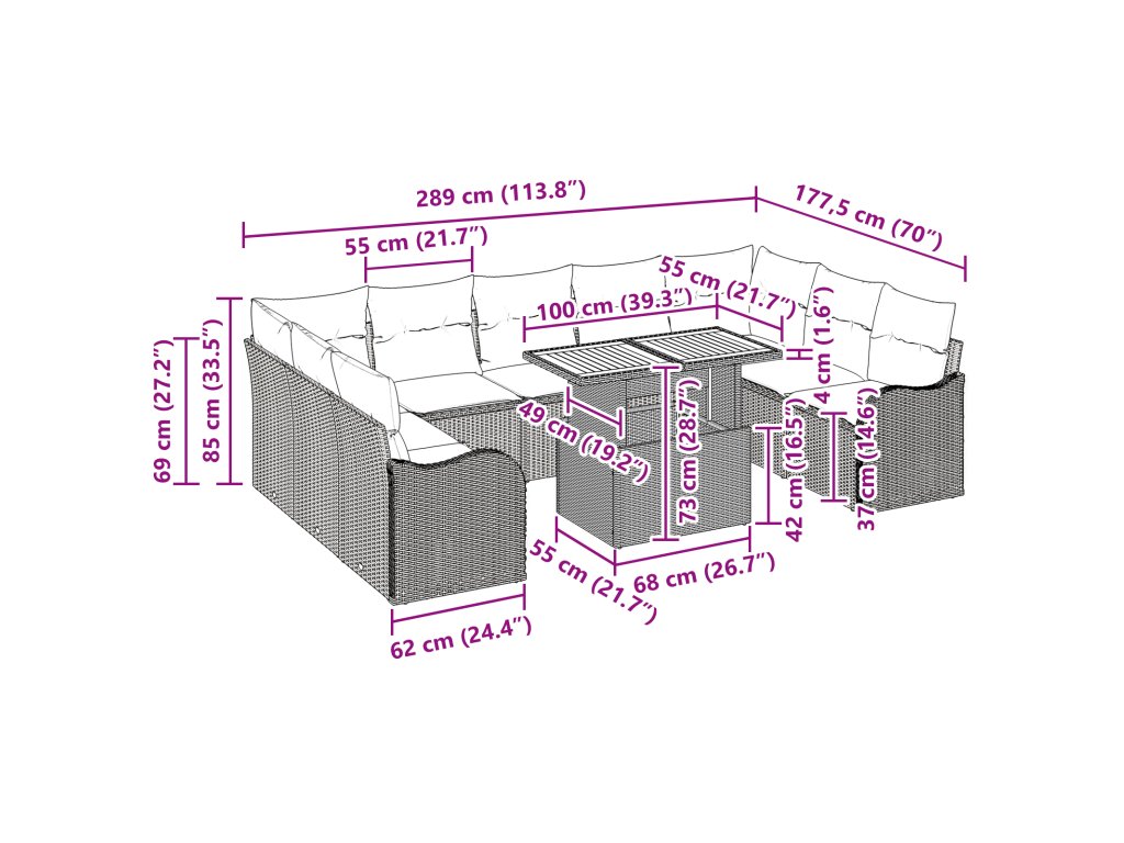 Sada zahradních pohovek s polštářem 10 pcs Šedá