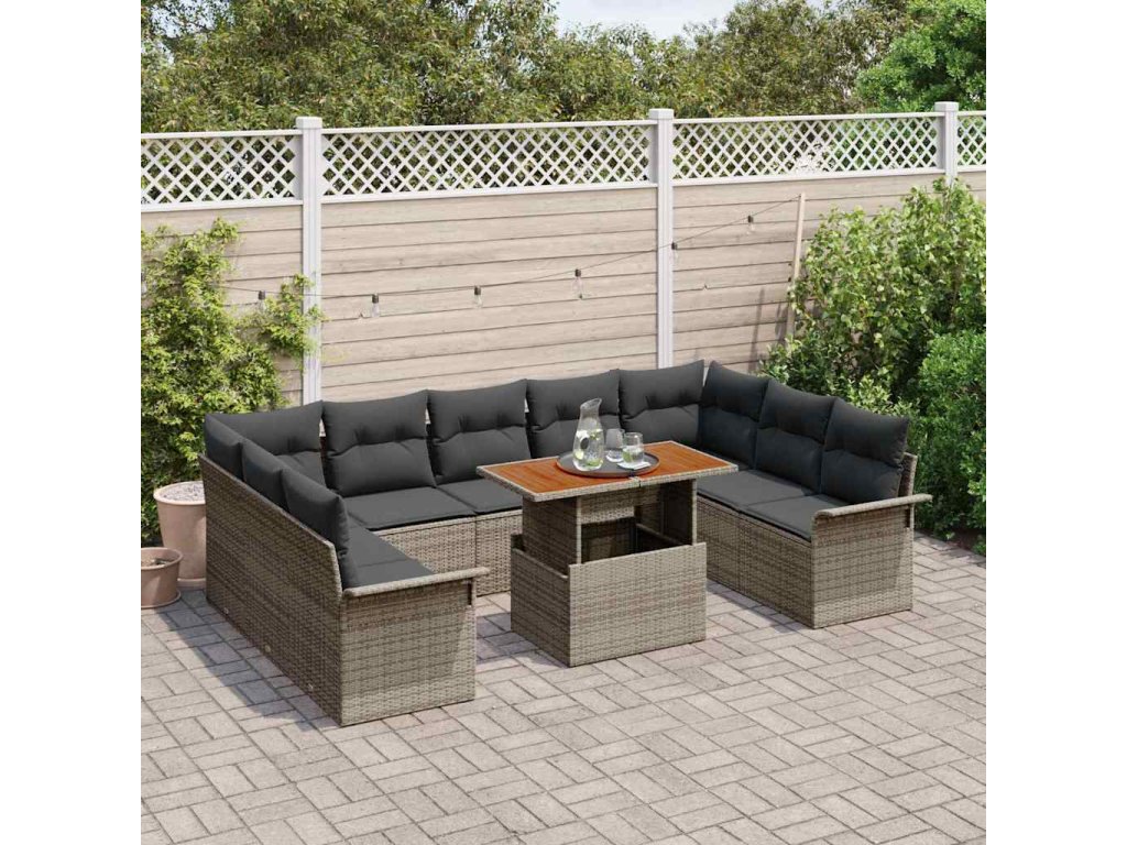 Sada zahradních pohovek s úložištěm 10 pcs Šedá Poly ratan