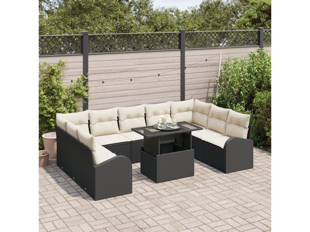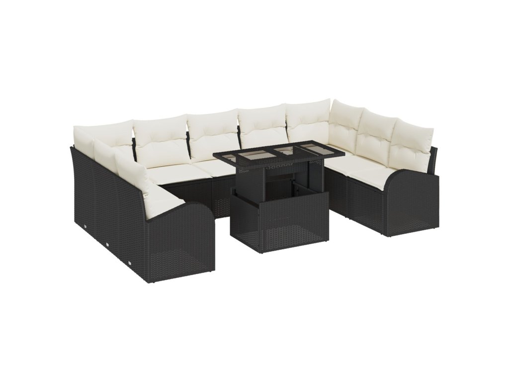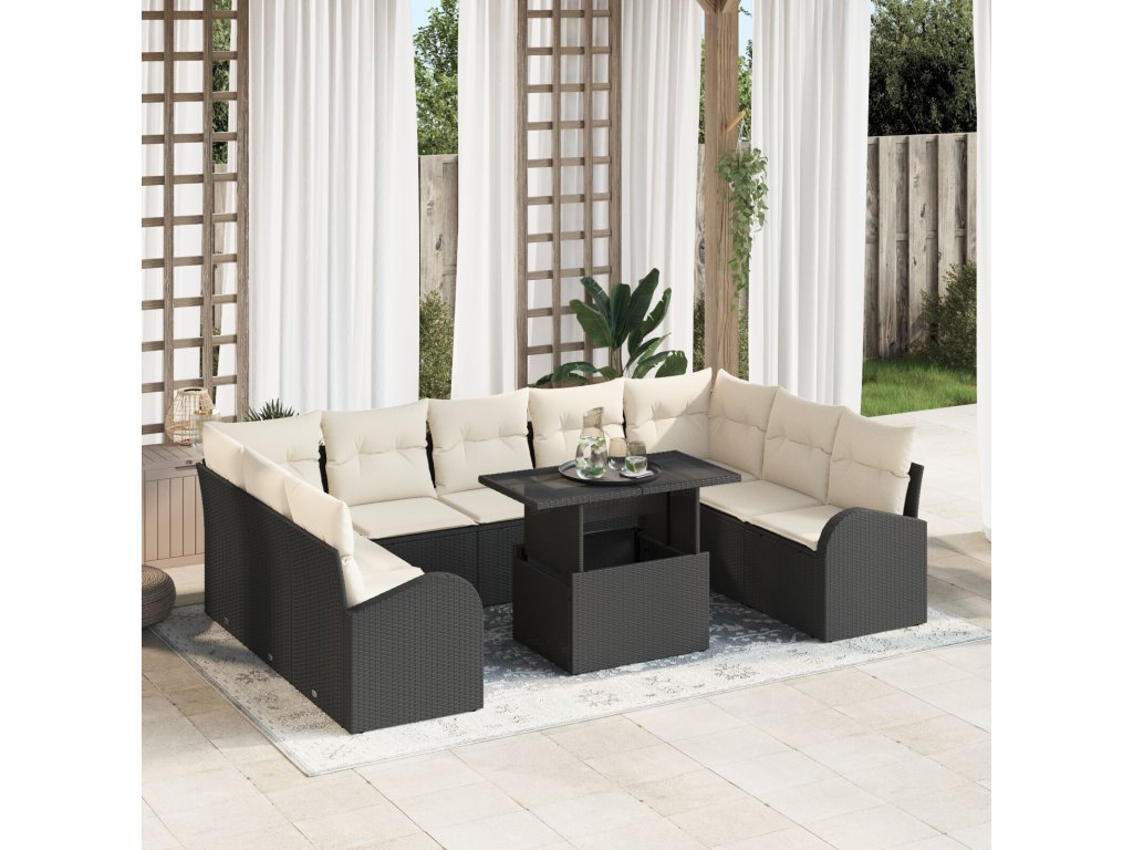 Sada zahradních pohovek 10 pcs Černá a krémová polyratan