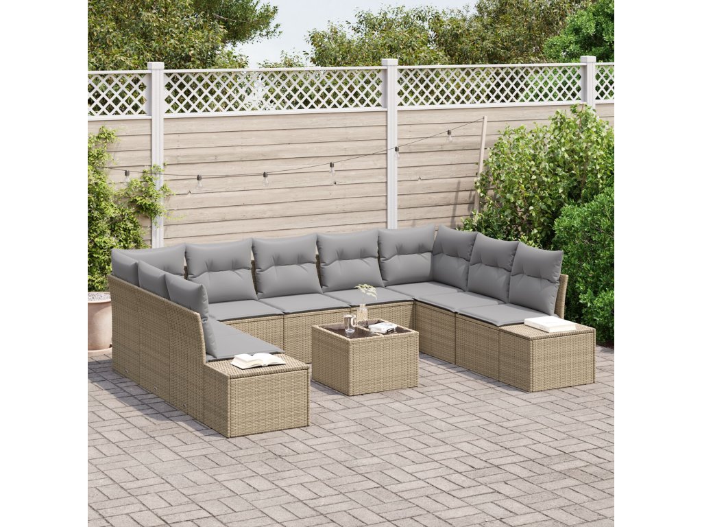 Sada zahradních pohovek s polštářem 10 pcs Béžová polyratan