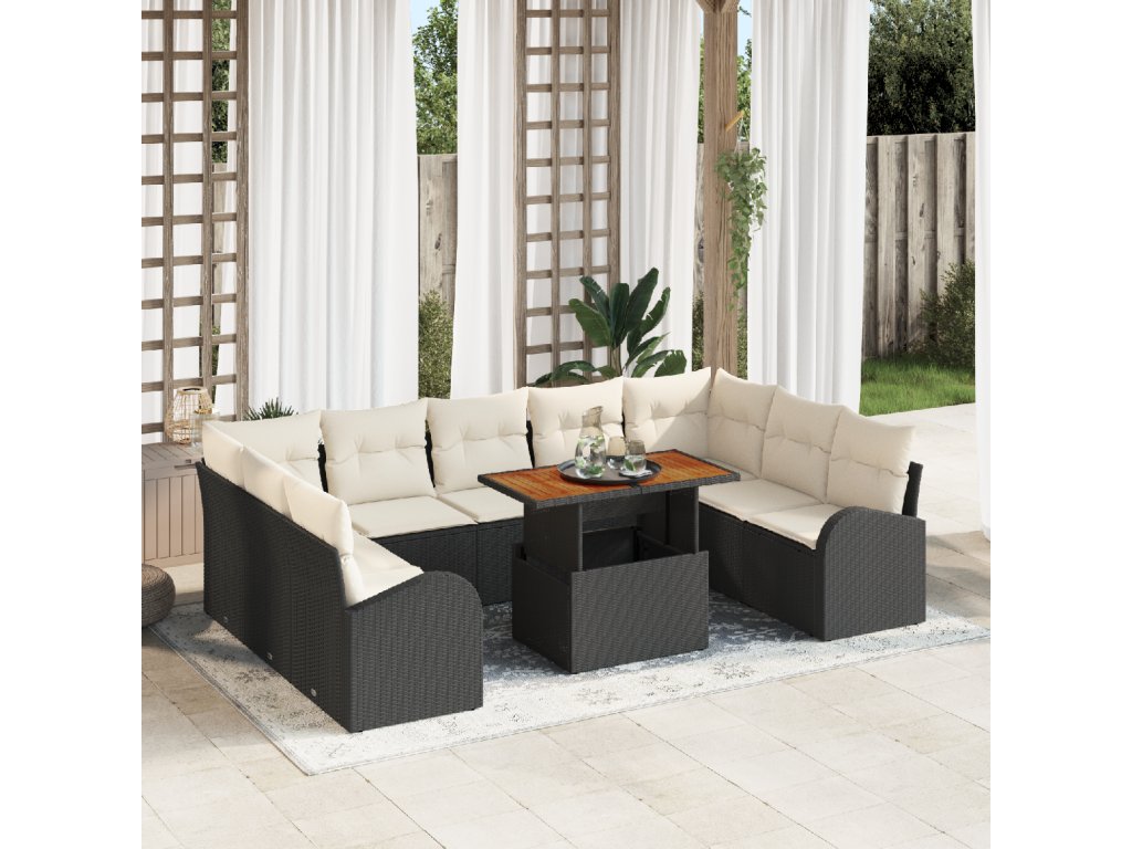 Sada zahradních pohovek s polštářem 10 pcs Černá a krémová