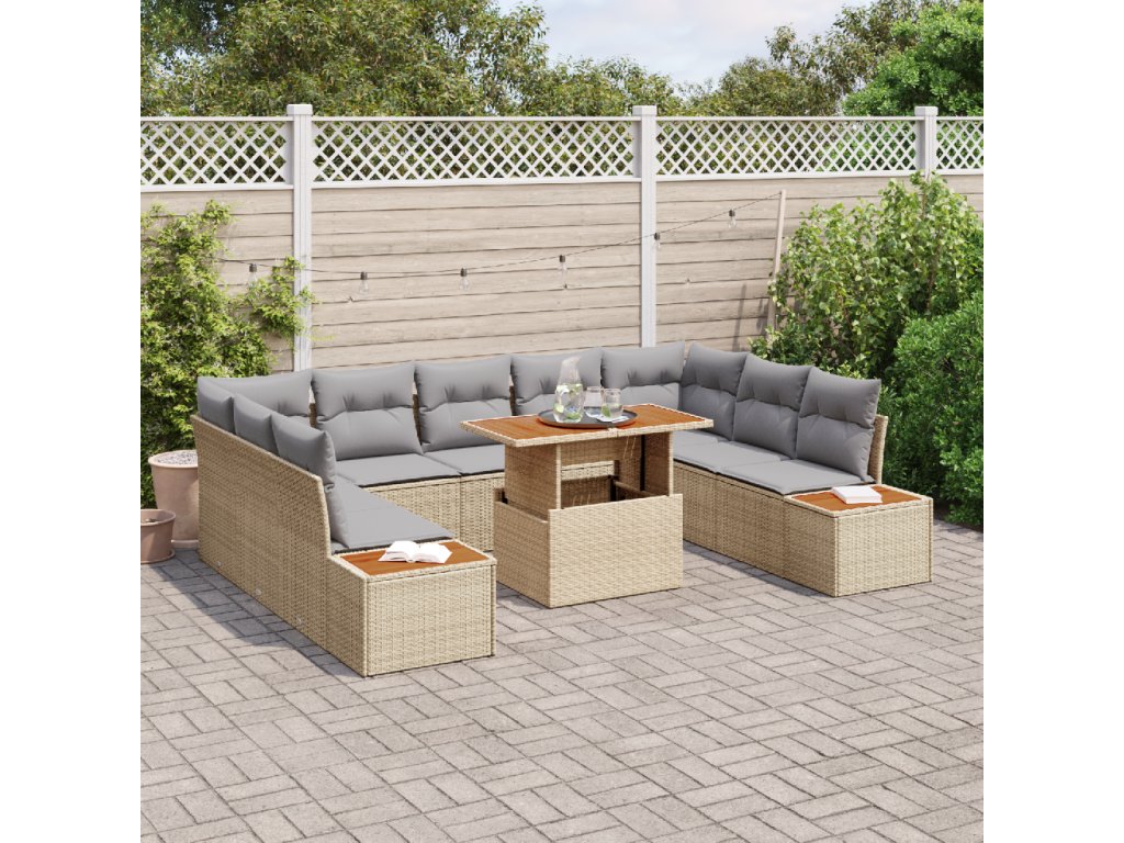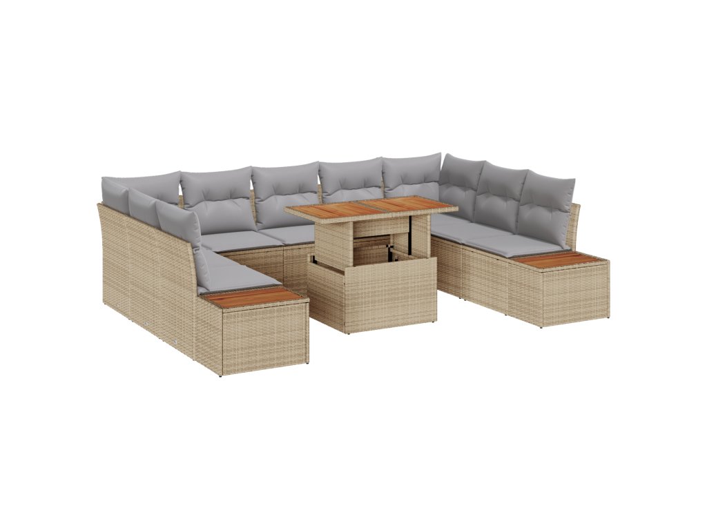 Zahradní jídelní souprava s polštářem 10 pcs Beige a šedá