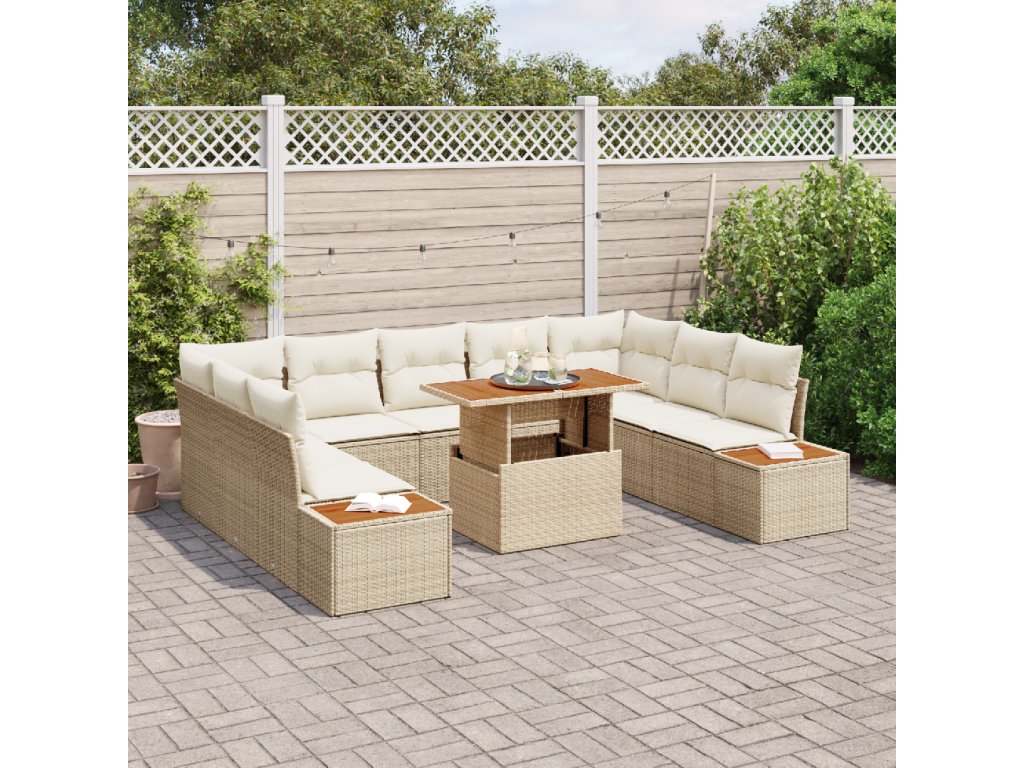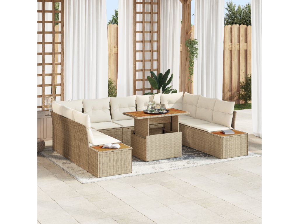 Zahradní jídelní souprava s polštářem 10 pcs Béžová a krémová