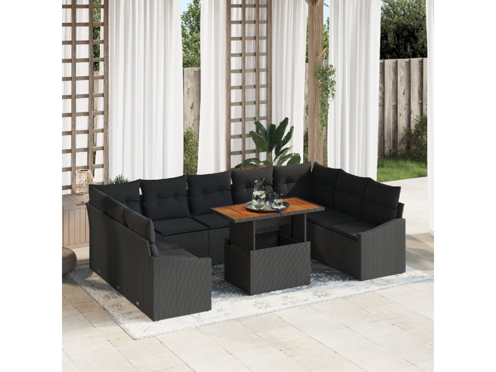 Zahradní jídelní souprava s polštářem 10 pcs Černá a hnědá