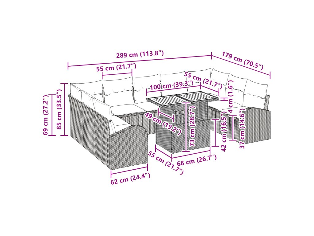 Sada zahradních pohovek s polštářem 10 pcs Šedá