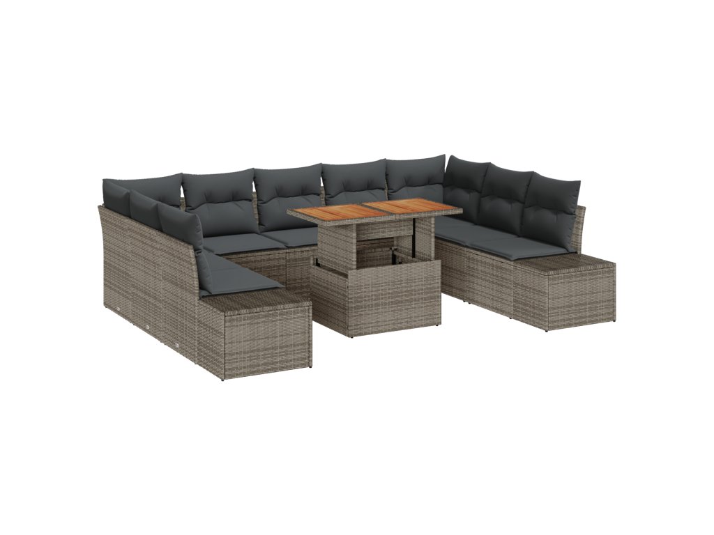 Zahradní jídelní souprava s polštářem 10 pcs Šedá a hnědá