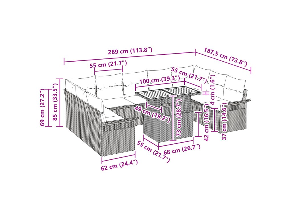 Sada zahradních pohovek s polštářem 10 pcs Šedá