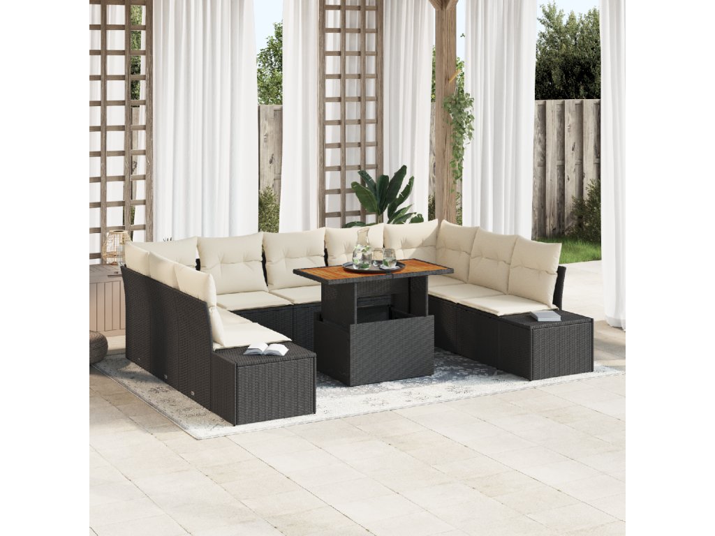 Zahradní jídelní souprava s polštářem 10 pcs Černá a krémová