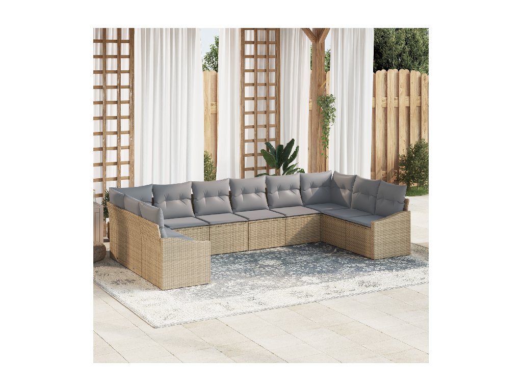 Sada zahradních pohovek 10 pcs Béžová a Světle šedá polyratan