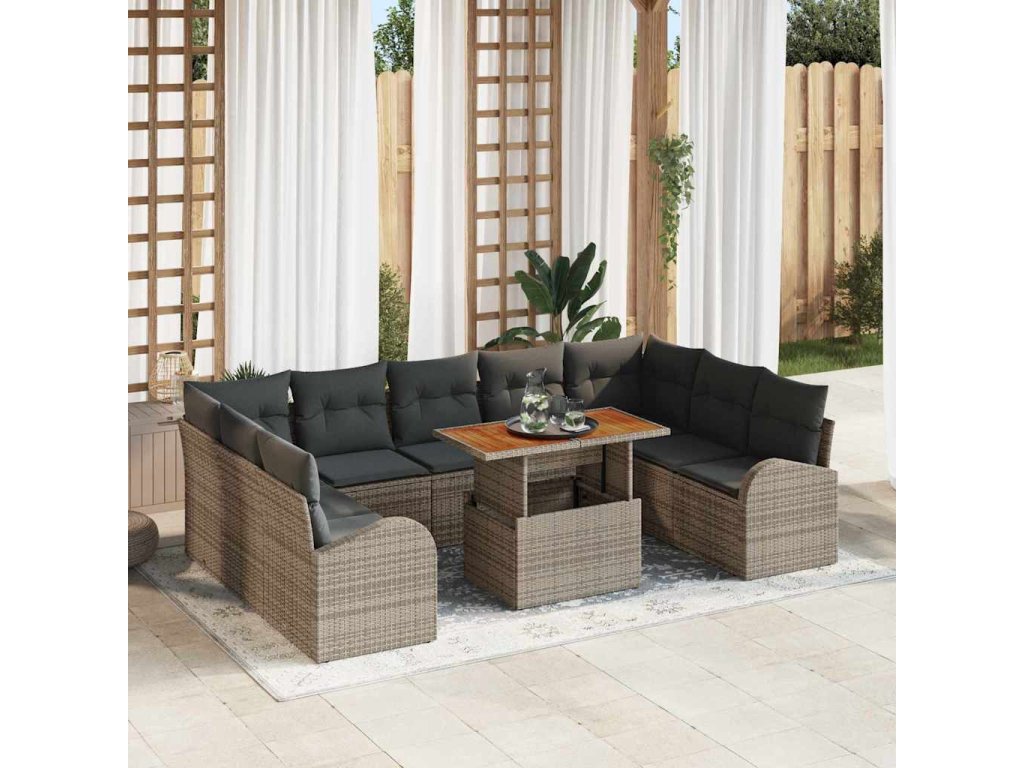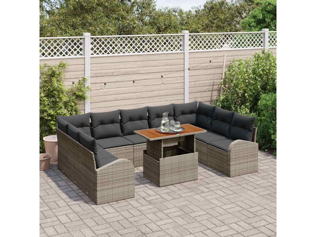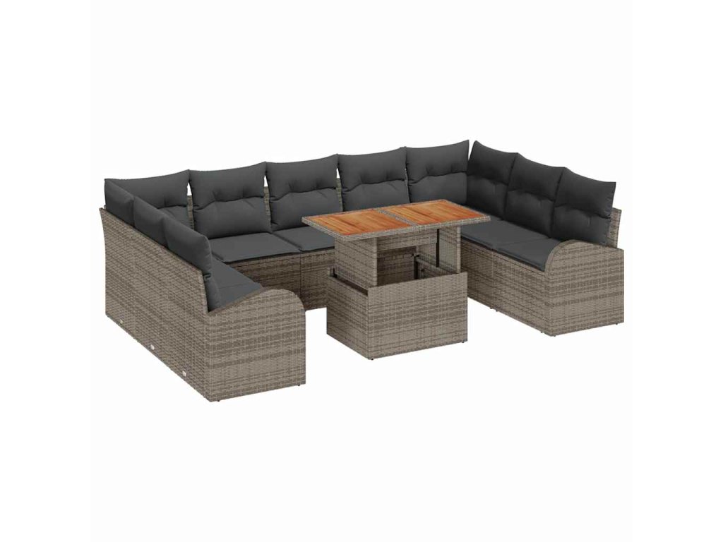 Sada zahradních pohovek s úložištěm 10 pcs Šedá Poly ratan