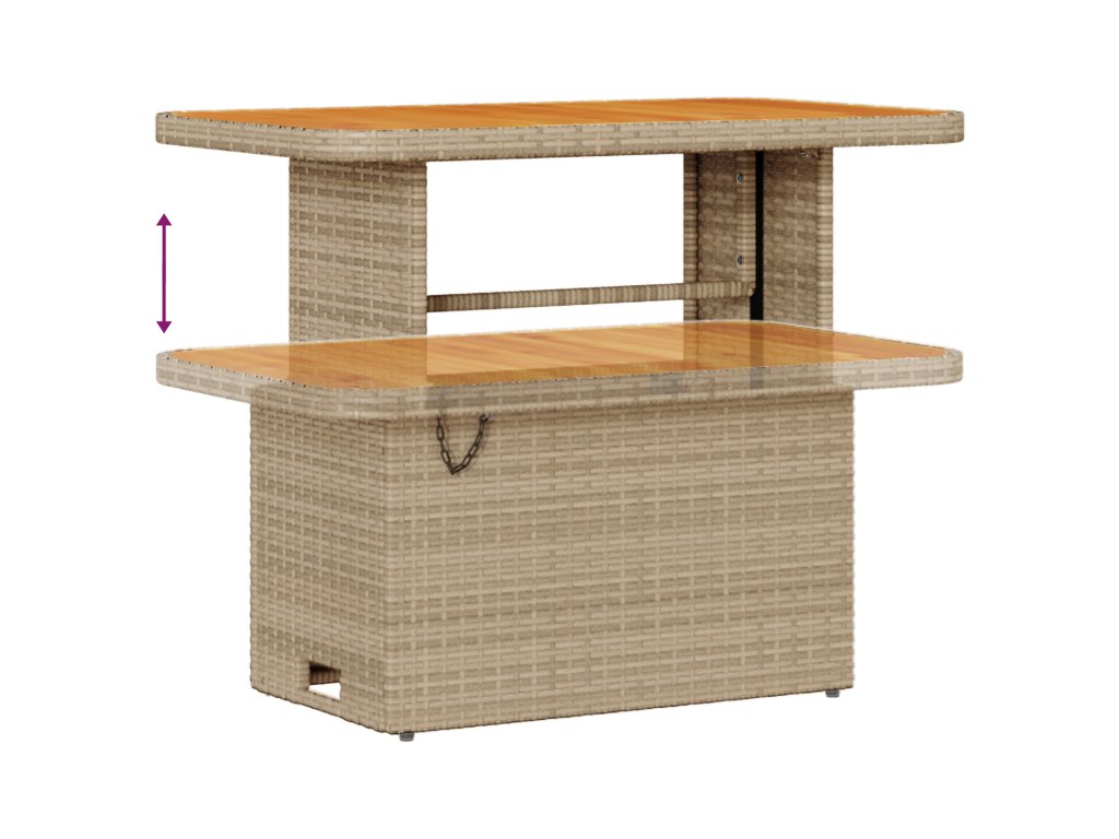 Poly ratanová konstrukce Materiál poly ratan zaručuje trvanlivost a trendy vzhled. Je odolný vůči špatnému počasí a UV paprskům, takže vám bude skvěle sloužit po celou sezónu. Integrované úložiště Chytře navržené s ukrytými úložnými prostory v lavicích a ottomanech pomáhá udržet věci přesně tam, kde mají být, bez nepořádku. Ideální na deky, polštáře nebo zahradní nářadí, abyste měli vše po ruce. Nastavitelný stůl Díky unikátnímu stolu, který mění výšku, se tento set snadno přizpůsobí od relaxačního posezení až po společné stolování. Maximálně využijete svůj venkovní prostor pro jakoukoliv oslavu. Sezónní všestrannost Tento set hladce přechází mezi jarními dny a letními večery. Jeho flexibilní design se hodí pro jakékoli setkání, což vytváří pohodlné a příjemné prostředí po celou sezonu. Bezproblémová údržba Udržujte váš zahradní sofa vždy jako nové, když ho zakryjete, když ho nepoužíváte. Materiál odolává venkovnímu počasí, což zjednodušuje údržbu a prodlužuje jeho životnost.- Barva: Béžová a světle šedá