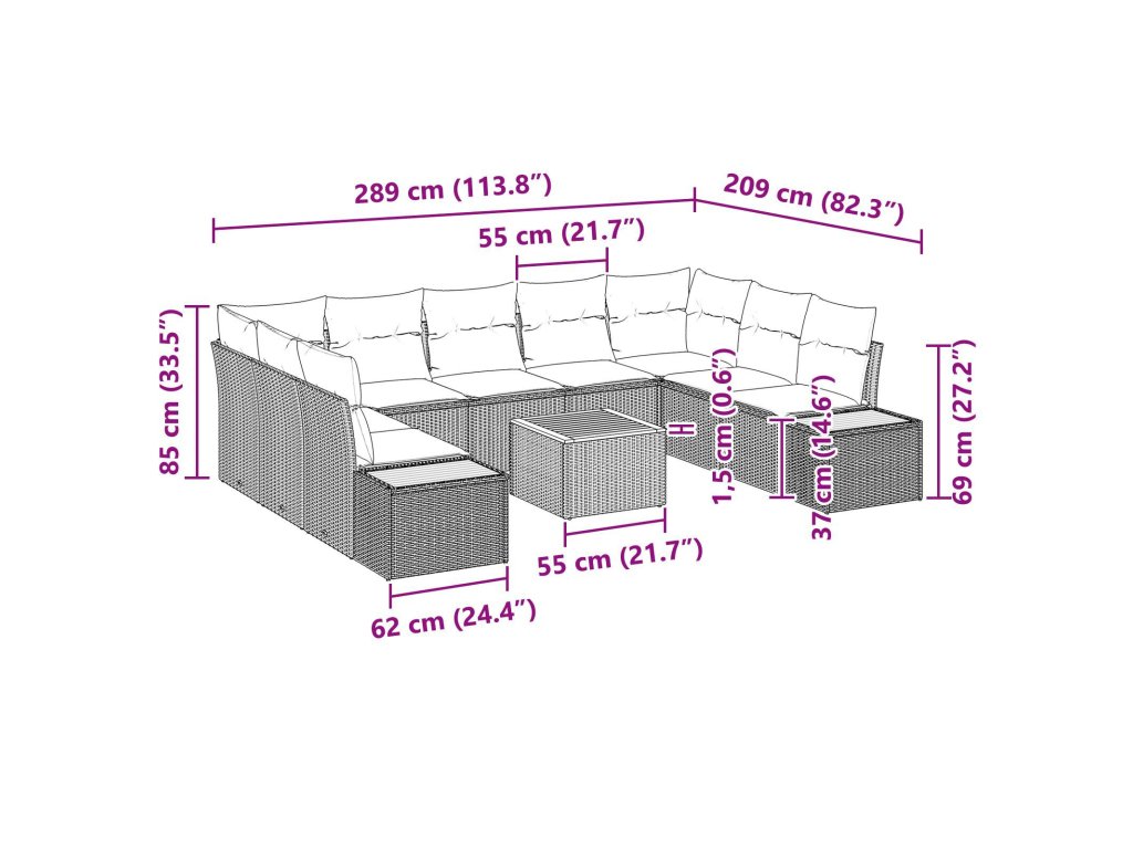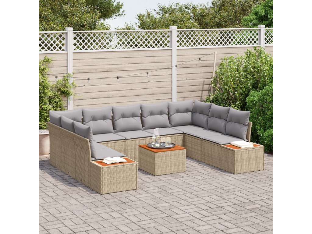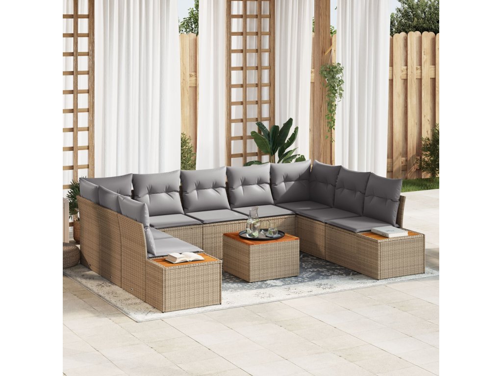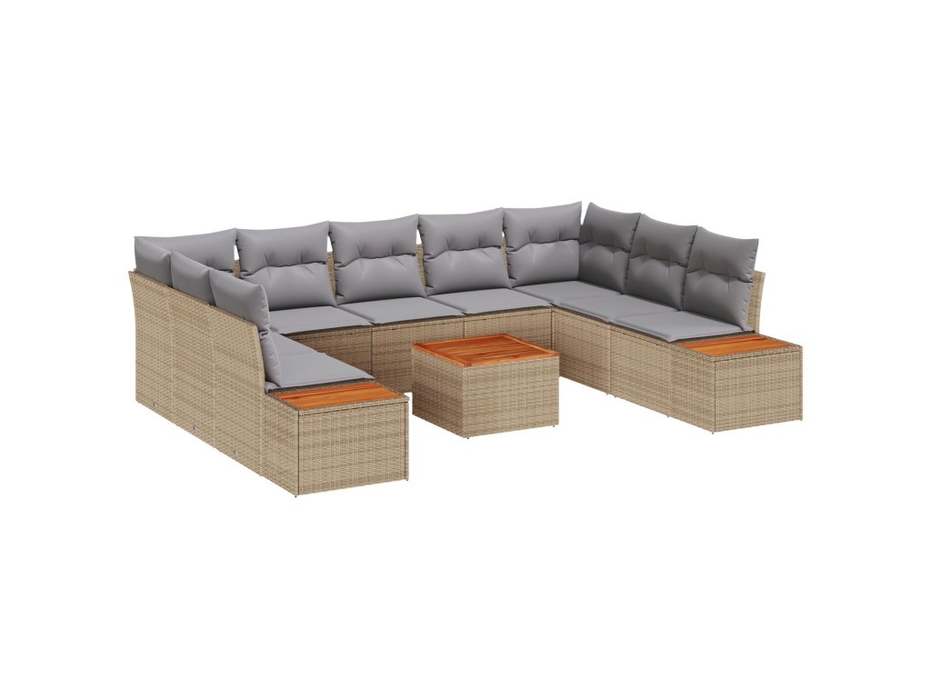 Sada zahradních pohovek s polštářem 10 pcs Béžová Poly ratan