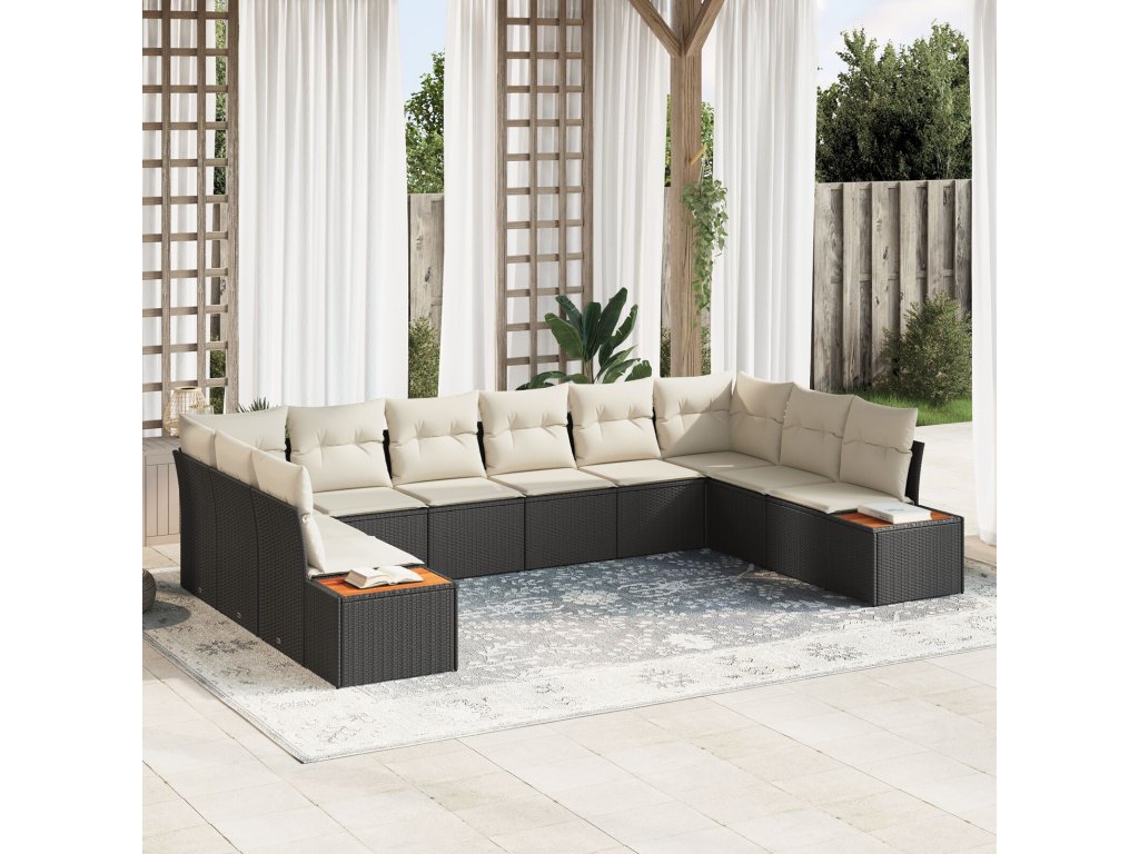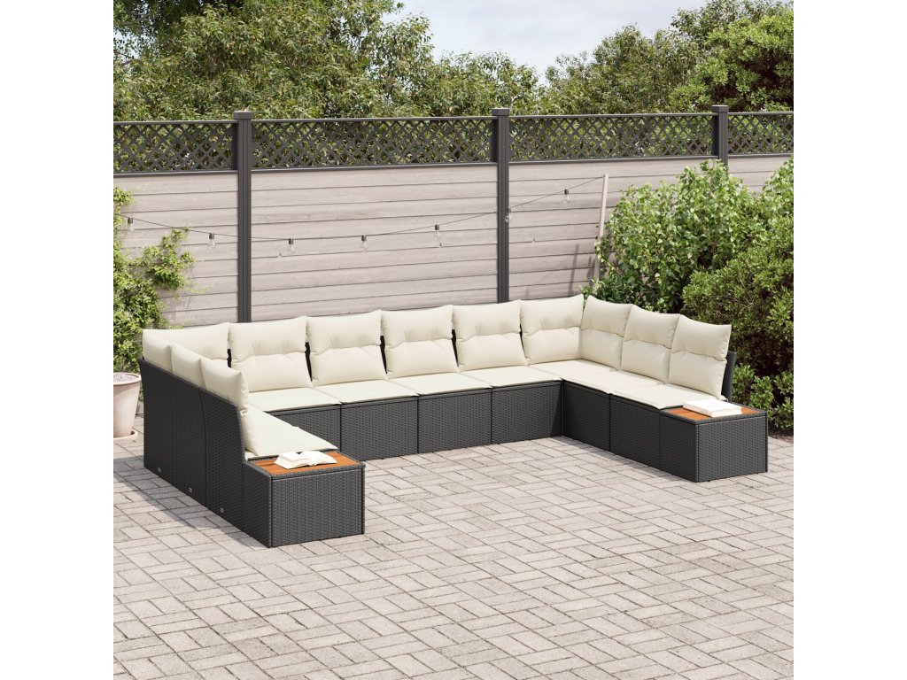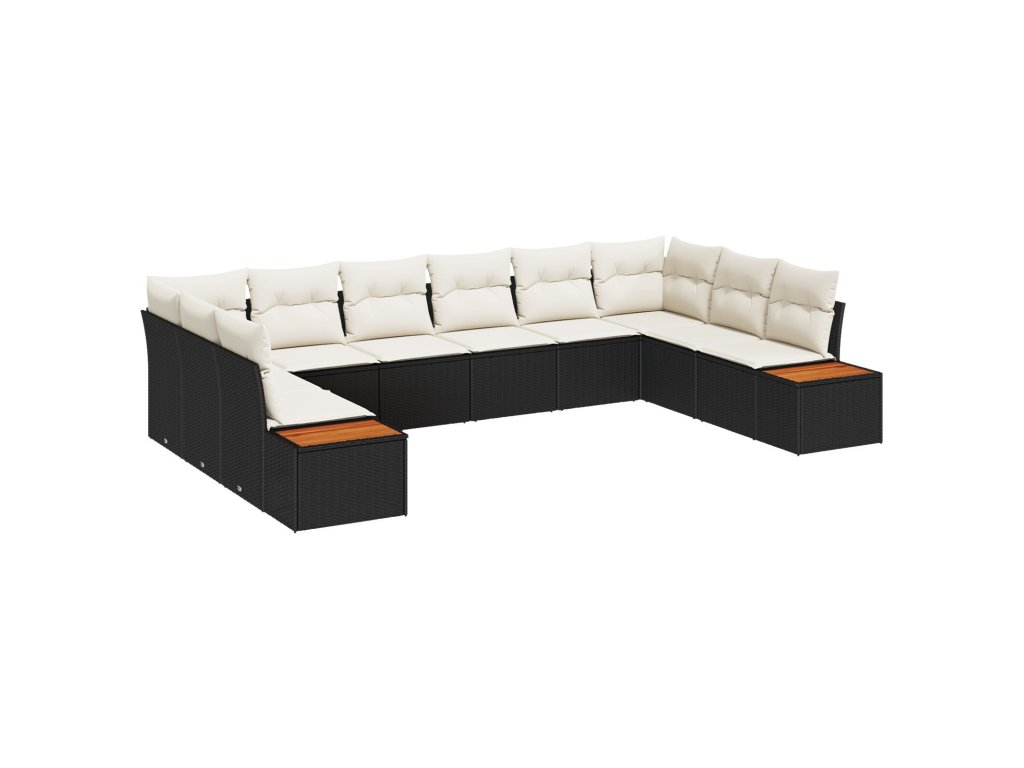Sada zahradních pohovek s polštářem 10 pcs Černá Poly ratan