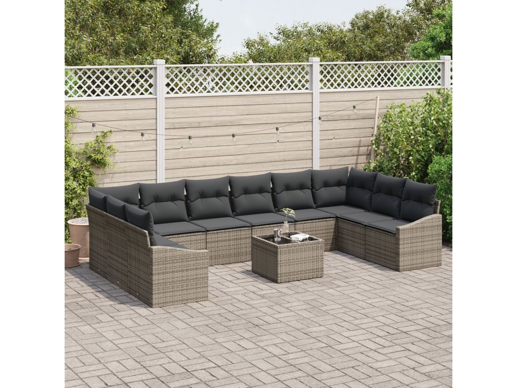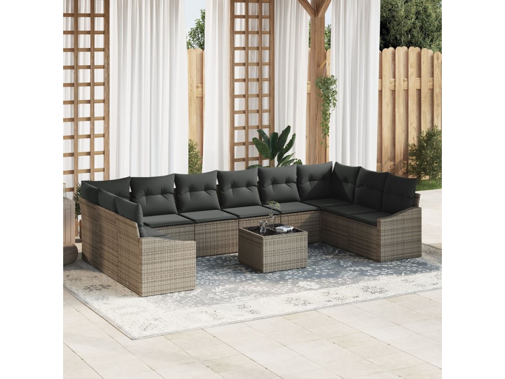 Set pohovek s polštářem 11 pcs Šedá polyratan