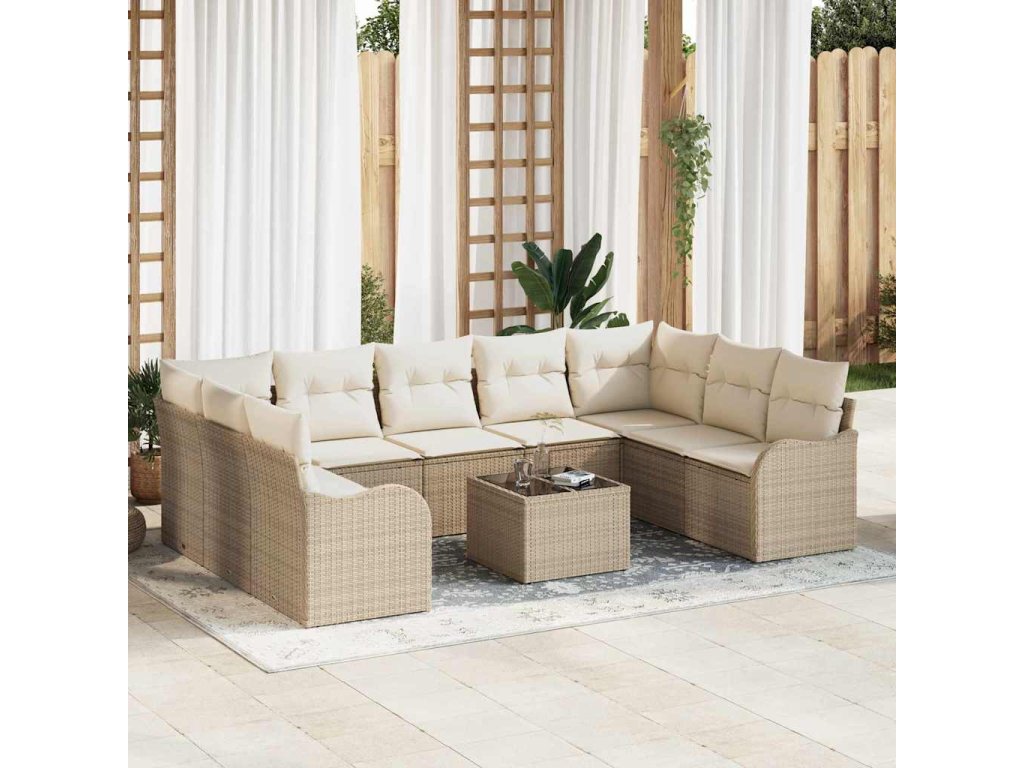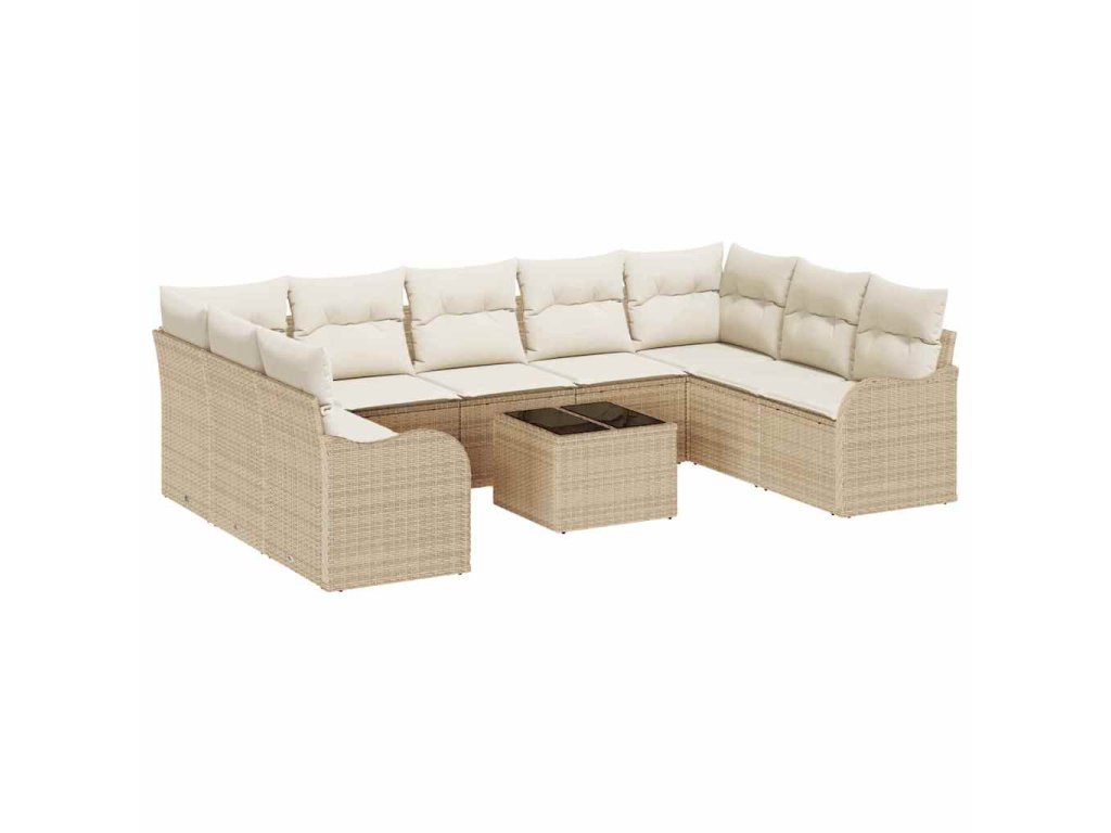 Sada zahradních pohovek 10 pcs Béžovo-bílá Poly ratan