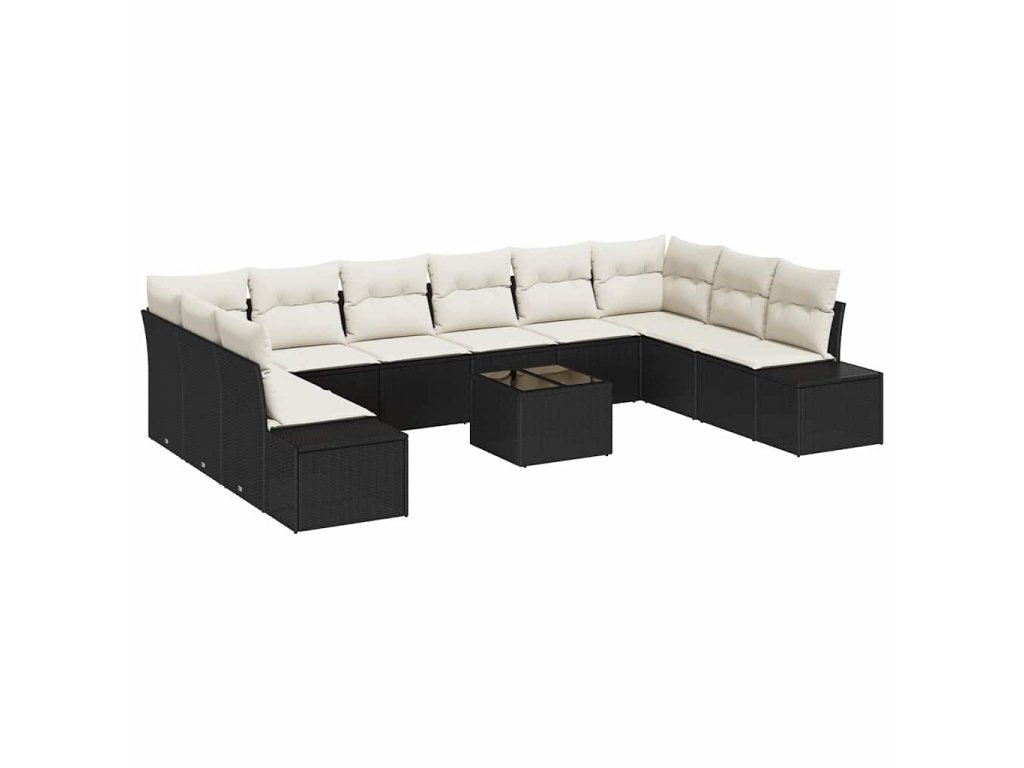 Sada zahradních pohovek 11 pcs Černá a krémová Poly Ratan