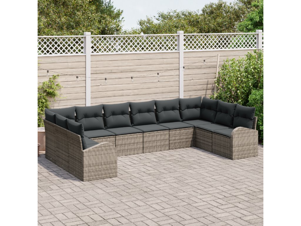 Set pohovek s polštářem s úložištěm 10 pcs Šedá polyratan