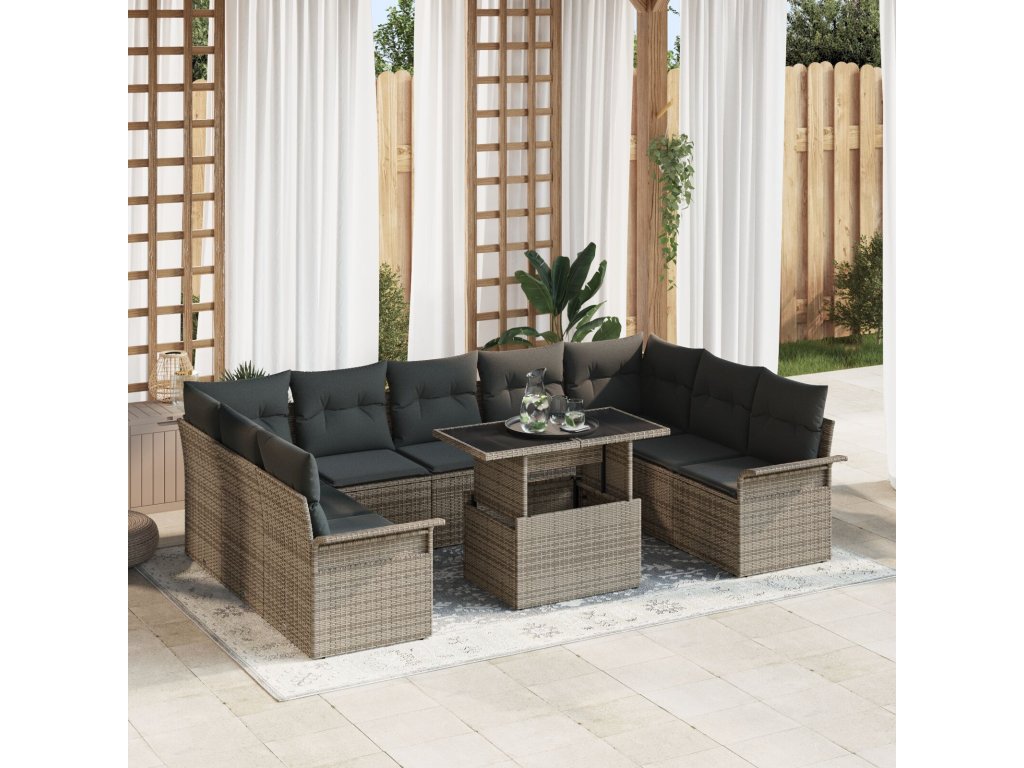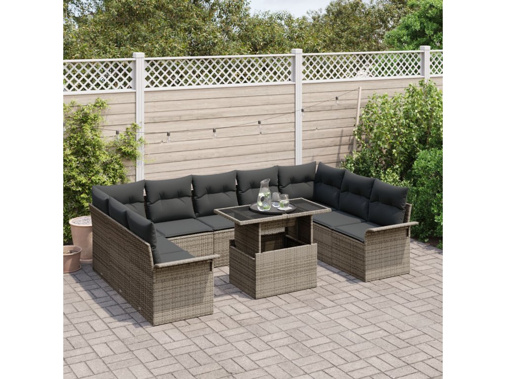 Sada zahradních pohovek s polštářem 10 pcs Šedá Poly ratan
