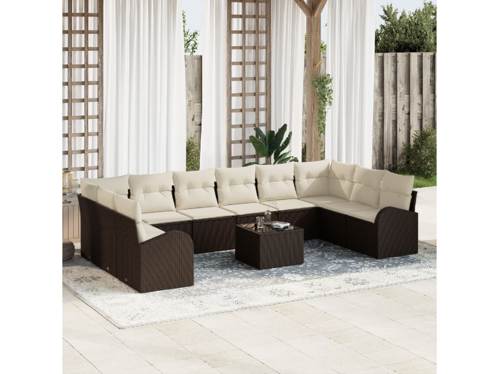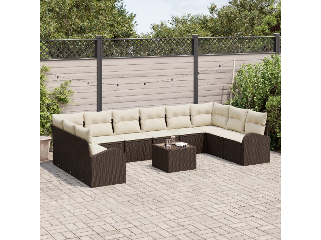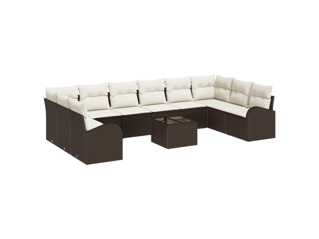 Set pohovek s polštářem 11 pcs Hnědá a krémová polyratan